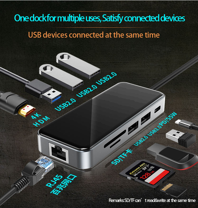 Airsky 10 in 1 Type C Çevirici Gigabit Rj45 4k Hdmi 5* Usb 3.0