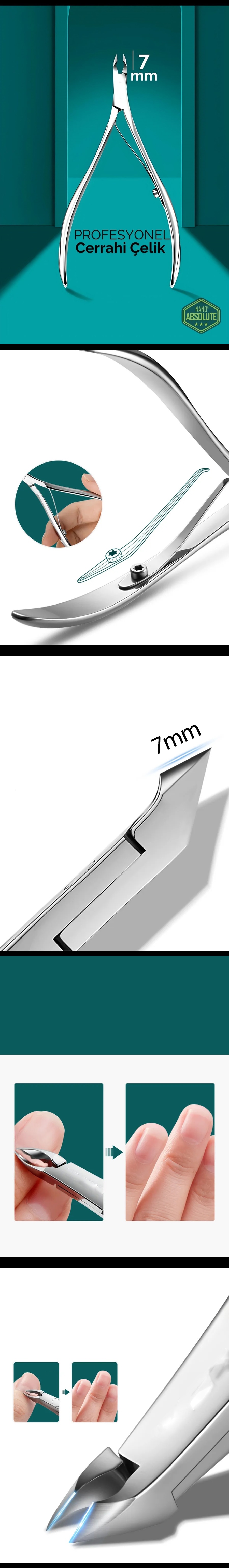 Nano Absolute Professional tarafından üretilen bu cerrahi çelik kütikül pensi, manikür ve pedikür işlemlerinde tırnak kenarındaki ölü deri ve etleri hassas şekilde temizlemek için özel olarak tasarlanmıştır.