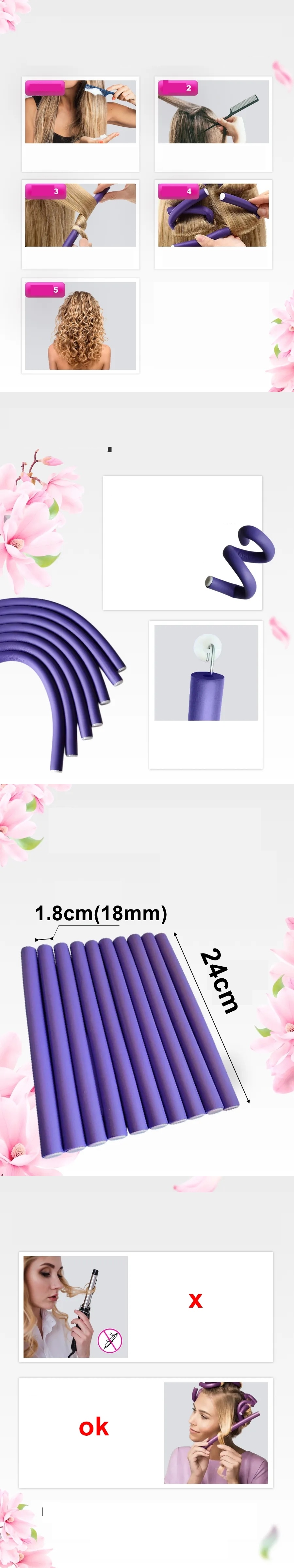 Bu yumuşak köpük saç çubukları, saçlar için esnek rulolar, esnek saç çubukları, bükümlü köpük saç bukle maşaları uzun veya kısa, ince veya kalın çoğu saç tipine uyacak ve en doğal, dalgalı, kabarık bukleleri oluşturmak için doğru boyuttadır. Uzun ya da kısa saçlara yönelik bu esnek çubukları aileniz ve arkadaşlarınızla da paylaşabilirsiniz.
