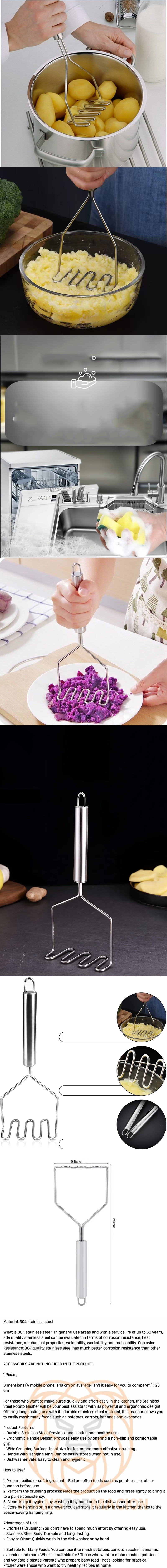 Mutfakta hızlı ve zahmetsiz bir şekilde püre yapmak isteyenler için Paslanmaz Çelik Patates Ezici, güçlü ve ergonomik tasarımıyla en iyi yardımcınız olacak! Dayanıklı paslanmaz çelik malzemesiyle uzun ömürlü kullanım sunan bu ezici, patates, havuç, muz ve avokado gibi birçok gıdayı kolayca ezmenizi sağlar.
