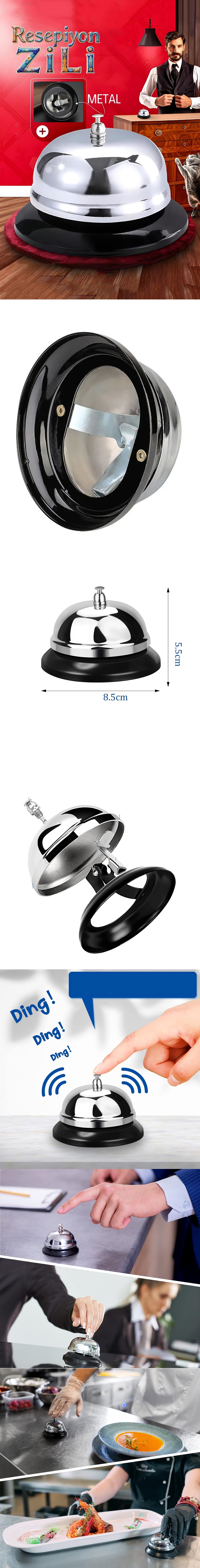 "8.5 x 5.5 CM büyük masa zili, metal çağrı zili olarak restoran, otel ve resepsiyon gibi alanlarda yüksek ses kalitesi sunar. Restoran ve resepsiyon için masa zili, dayanıklı yapısı sayesinde uzun ömürlü kullanım sağlarken, dekoratif masa üstü zil şık tasarımıyla her ortama uyum sağlar!"