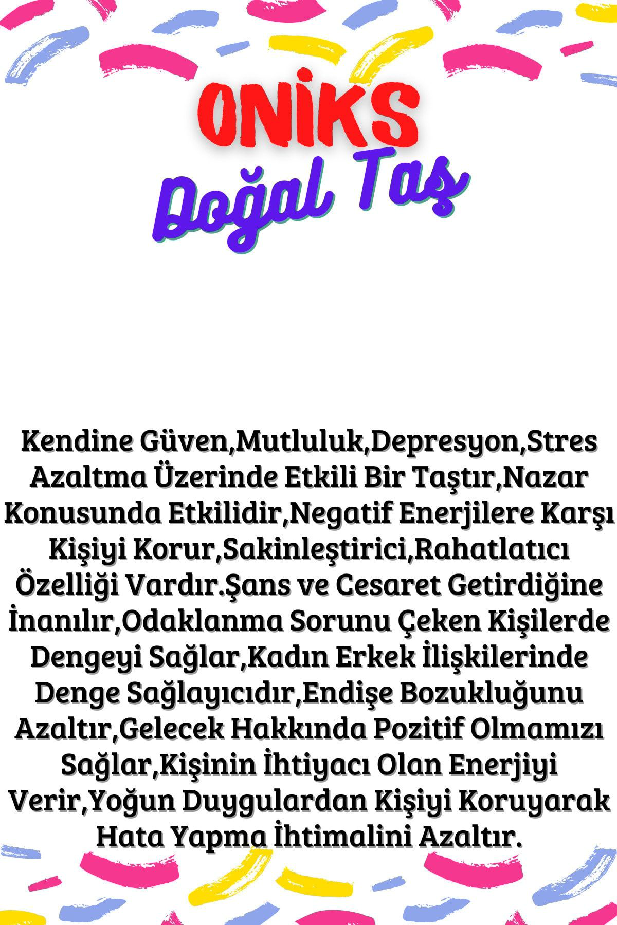 - Doğal oniks taşı, benzersiz ve şık bir görünüm sunar, her türlü dekorasyona doğal bir dokunuş katar.; - 4 adet büyük boy oniks taşı, farklı boyutlarda ve renklerdeki parçalarla dekoratif objelerinizi zenginleştirir.; - Siyah renk tonuyla modern ve sofistike bir stil yaratır, mekanınıza derinlik ve zarafet katar.; - 4 x 2 cm boyutlarındaki bu taşlar, hem kişisel kullanım hem de hediye olarak idealdir; her türlü yaratıcı projede kolayca kullanılabilir.