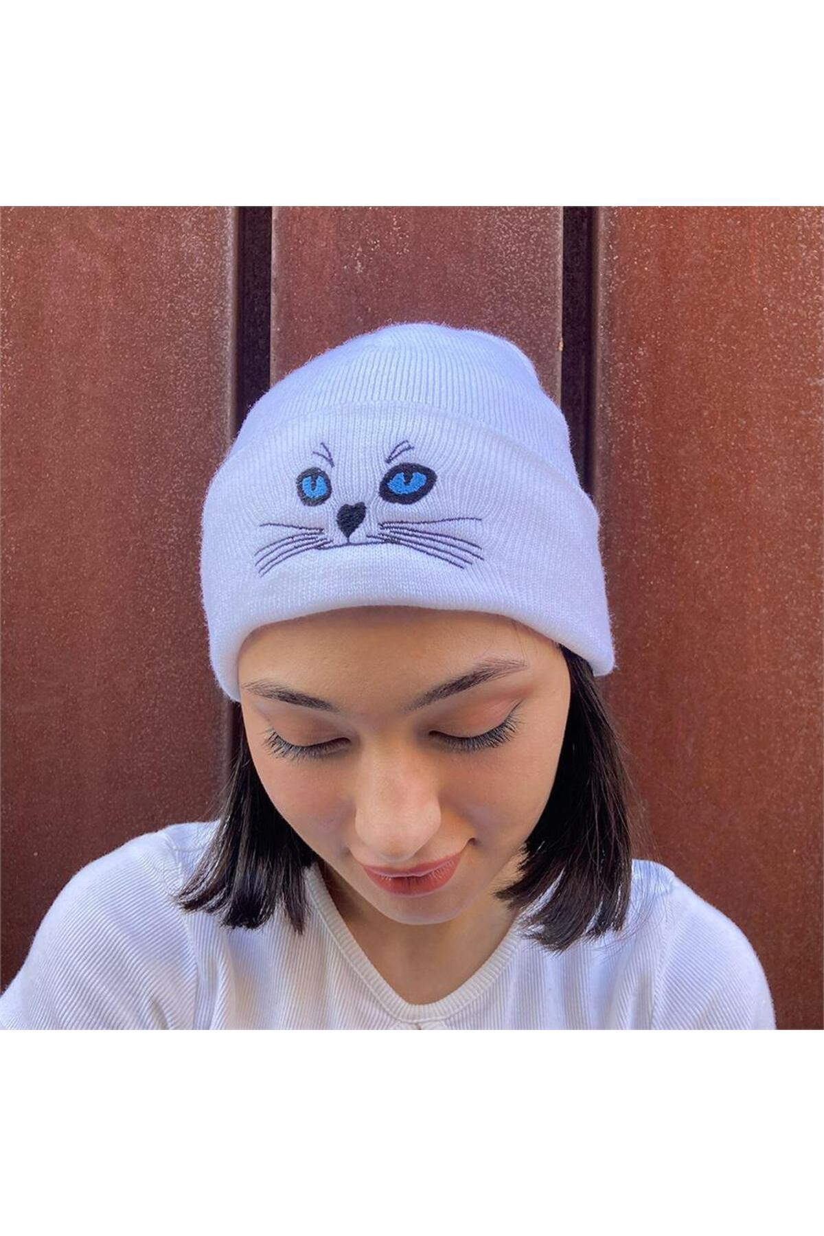 Gençlerin tarzını yansıtan beyaz renkli ve kedi yüzü desenli bere, günlük kullanım için idealdir.; %100 pamuk materyali sayesinde yumuşak dokusuyla cildi rahatsız etmez ve gün boyu konfor sağlar.; Kedi yüzü deseniyle dikkat çekici bir görünüm sunarken, gençlerin enerjisini yansıtır.;