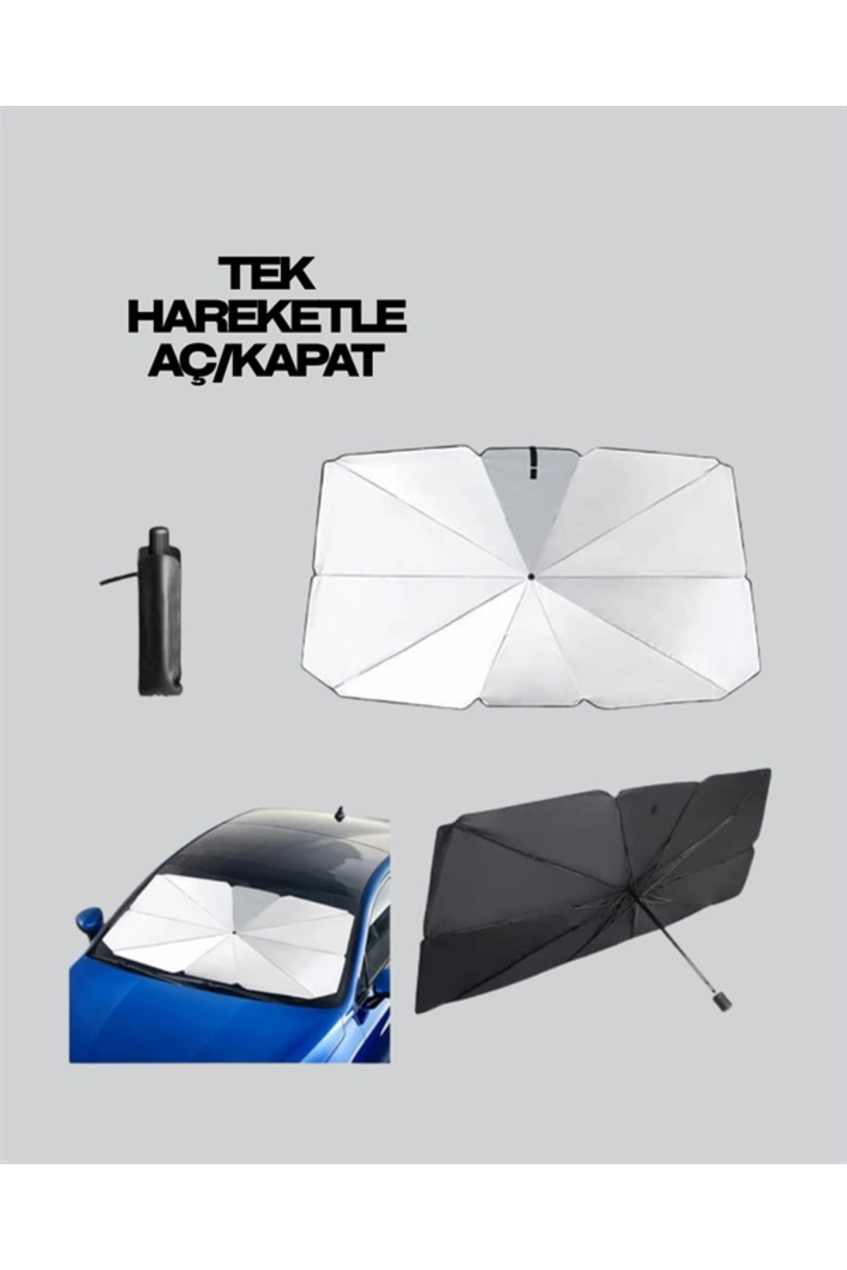 Aracınıza bindiğinizde karşılaştığınız bunaltıcı sıcaklığa elveda deyin! Bu gelişmiş ön cam güneşliği, özel kaplamalı kumaşı sayesinde aracın içine giren ısıyı büyük oranda engeller.; Güneşlik yalnızca serinlik sunmakla kalmaz, aynı zamanda araç içi plastik ve deri aksamların ömrünü uzatır.; Kolayca çekilerek açılan ve toplanan tasarımı sayesinde, zamandan tasarruf eder ve kullanıcı dostu deneyim sunar.; Kullanmadığınızda katlayarak küçük bir alana koyabilirsiniz.; Sağlam cam elyaf iskelet, güneşliğin uzun süreli kullanımına olanak tanır.; Farklı araç boyutlarına uygun küçük ve büyük ölçü seçenekleriyle satışa sunulur.; UV ışınlarına karşı güçlü koruma sağlar, böylece sadece siz değil, çocuklarınız ve evcil hayvanlarınız da daha güvenli bir sürüş deneyimi yaşar.