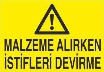 Malzeme Alırken İstifleri Devirme Uyarı Levhası