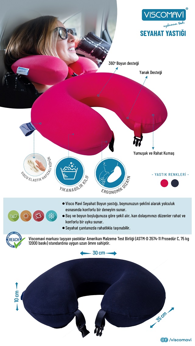Visco Seyahat Yastığı (ORTOPEDİK VİSCO SEYAHAT YASTIĞI BOYUN YASTIĞI VİSCO YASTIK BOYUNLUK LACİVERT)